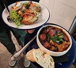 We hebben een gevarieerd menu met verse groente, stoof, vis en schelpdieren.